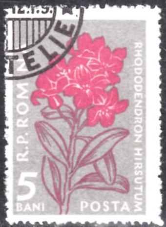 Auf dieser Marke aus Rumänien (MiNr 1647) wird eine Bewimperte Alpenrose (Rhododendron hirsutum) gezeigt.