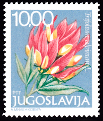 Auf dieser Marke aus Jugoslawien (MiNr 1792) wird die Blüte des Westalpen-Klee (Trifolium alpinum) abgebildet. Bei Michel wird der Name mit Alpenklee (Trifolium alpinum) angegeben.