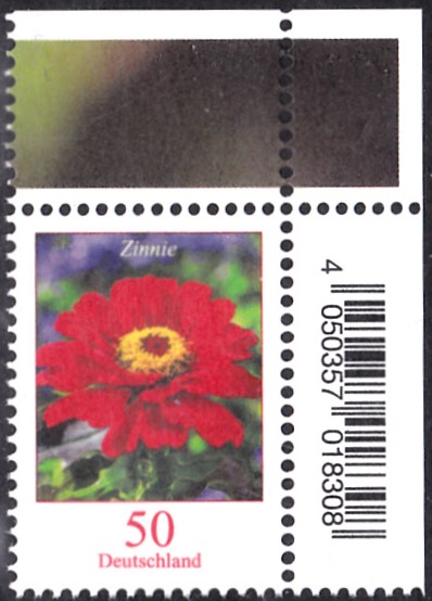 In der Dauerserie Blumen ist eine Marke zu 50 Cent (MiNr 3535) mit einer Zinnie (Zinnia elegans) erschienen.