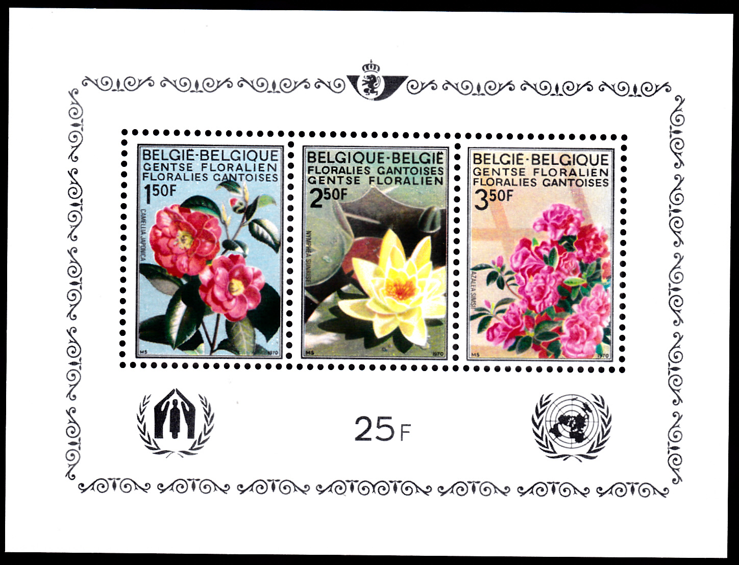 Auf dieser Marke (MiNr 1580 I) aus einer belgischen Serie zur Genter Blumenschau 1970 werden Blüten der Kamelie (Camellia japonica) gezeigt.