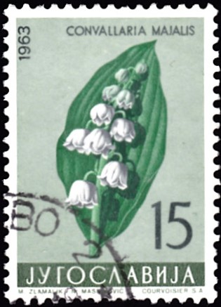 Auch auf einer Marke aus Jugoslawien (MiNr 1034) ist ein Maiglöckchen (Convallaria majalis) abgebildet.
