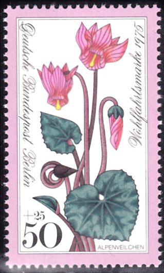 In Berlin ist eine Marke (MiNr 512) mit einem Alpenveilchen (Cyclamen purpurascens) erschienen.