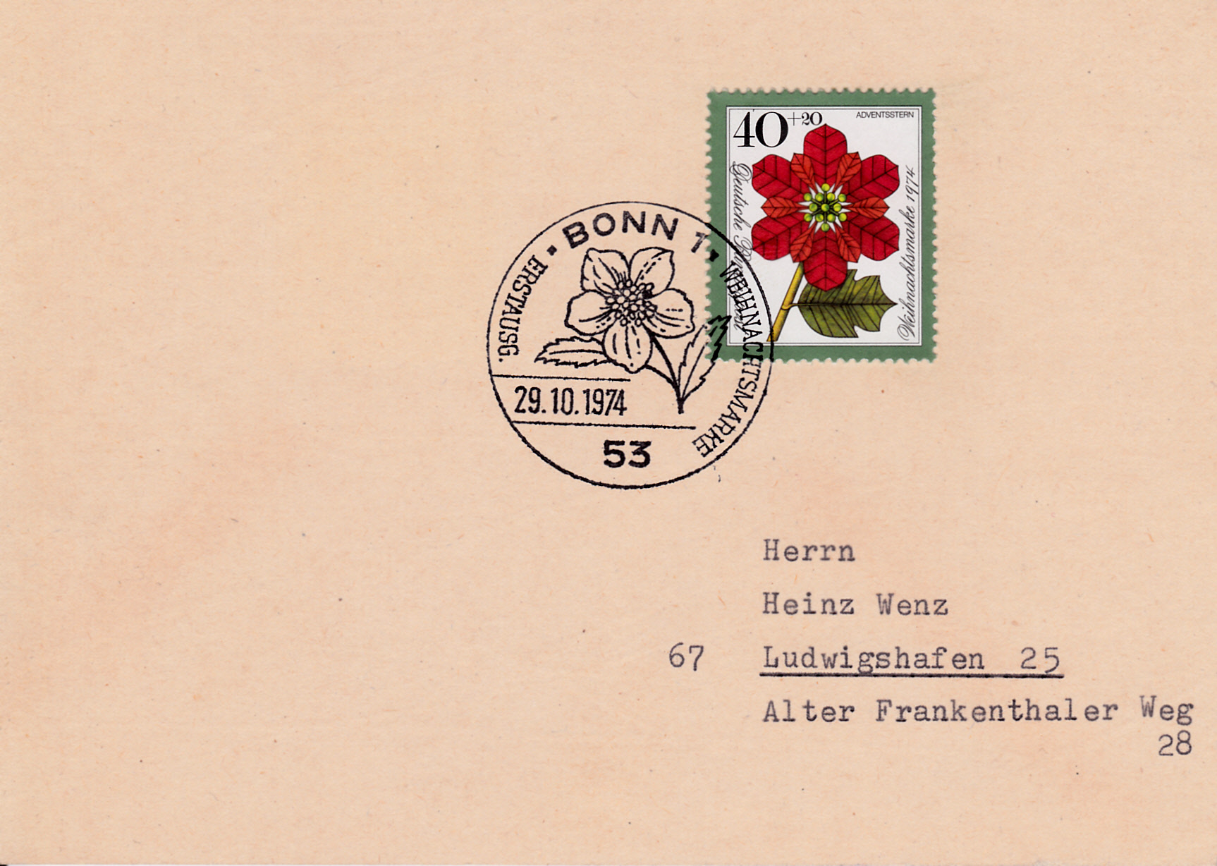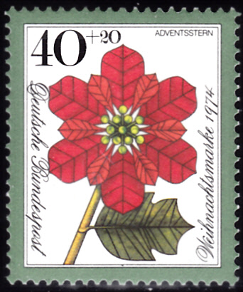 Auf der Weihnachtsmarke 1974 (MiNr 827) ist ein Weihnachtsstern (Euphorbia pulcherrima) abgebildet.