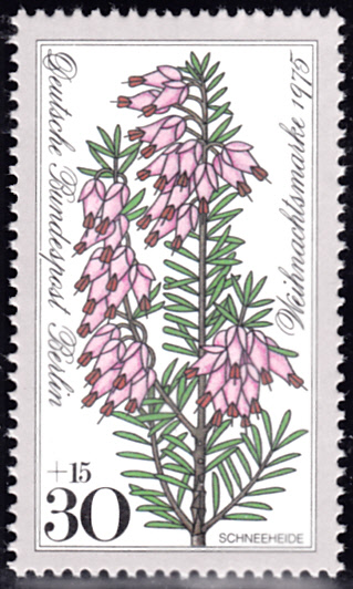 Die Weihnachtsmarke aus Berlin (MiNr 514) zeigt einen Zweig der Schneeheide (Erica carnea).