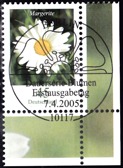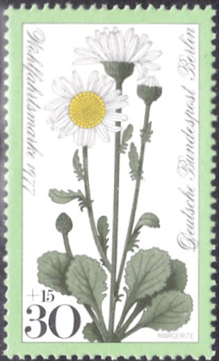 Hier kann ich eine Marke aus San Marino (MiNr 567) zeigen, die eine Garten-Margerite (Leucanthemum maximum) zeigt.