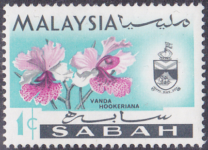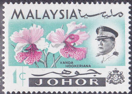 In den Malaiische Staaten V Malaienstaaten, Johor ist diese Marke (MiNr 154) mit Blüten der Papilionanthe hookeriana (Syn.: Vanda hookeriana; Vanda Hookeri) erschienen.