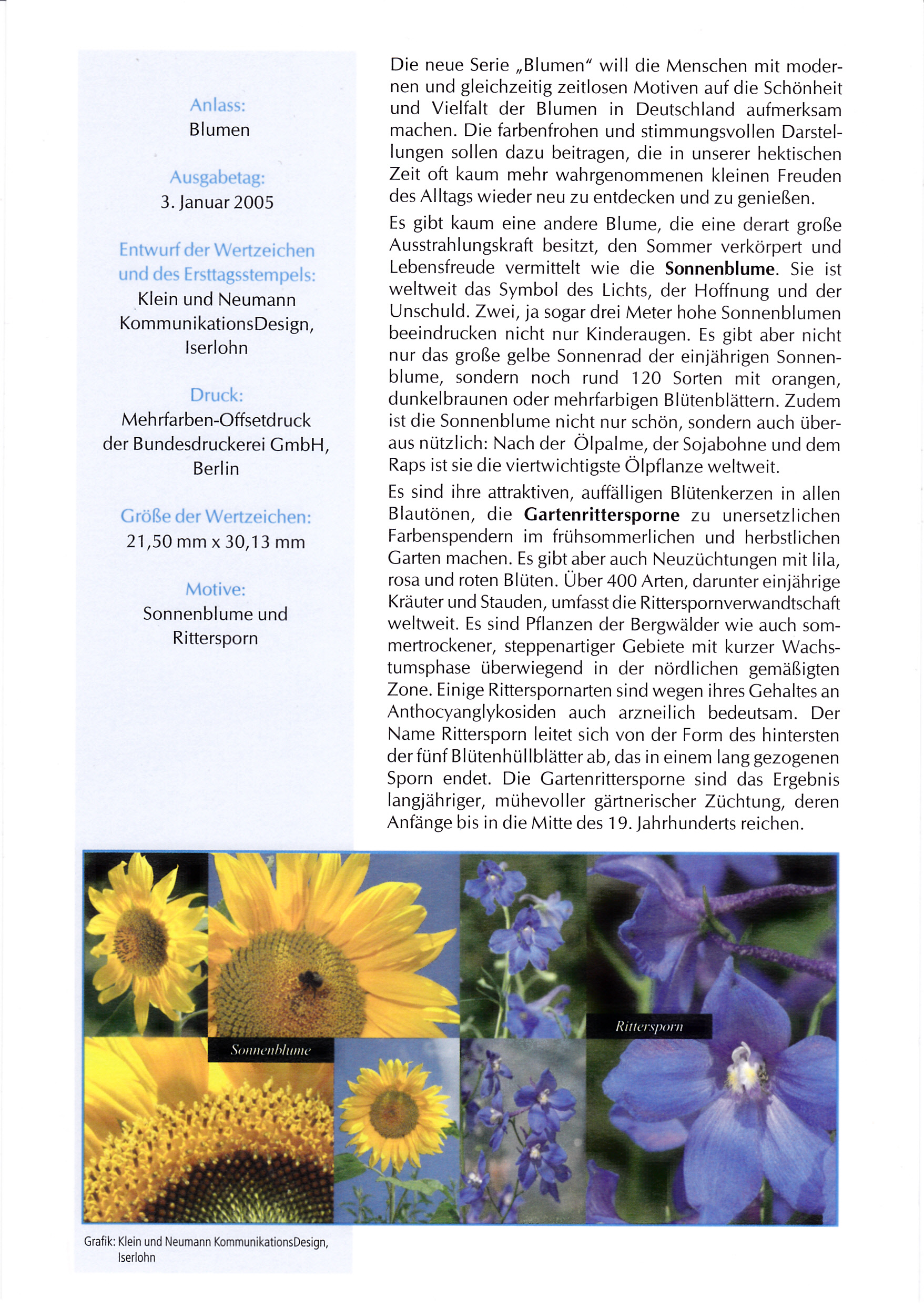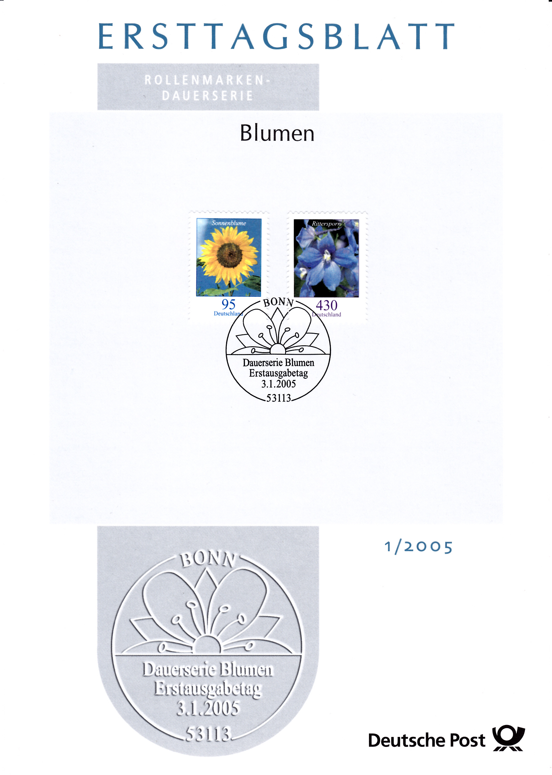 Blumen als Freimarke heraus. Ersttag der MiNr. 2434 war der 3. Januar 2005.