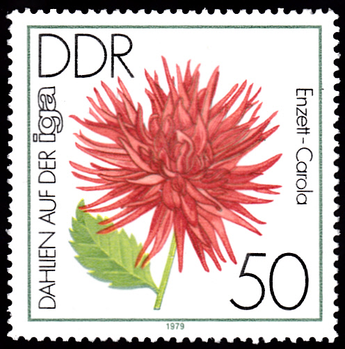 Die sechste und letzte Marke dieser Serie der DDR (MiNr 2440) bildet eine Halskrausen-Dahlie, die auf den Namen "Don Lorenzo" getauft wurde.