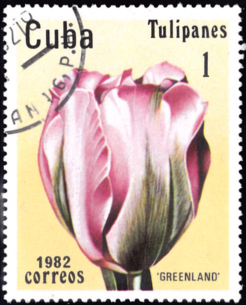 Aus einer Serie aus Kuba kommt diese Marke (MiNr 2643) mit der Zuchttulpe mit dem Namen "Greenland".