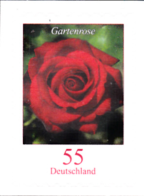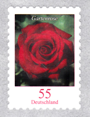 In der Dauerserie "Blumen" der Deutschen Post ist auch eine Marke (MiNr 2669) mit der Blüte einer Rose erschienen. ImM Michel wird als Name Gartenrose (Rosa remontana) genannt.
