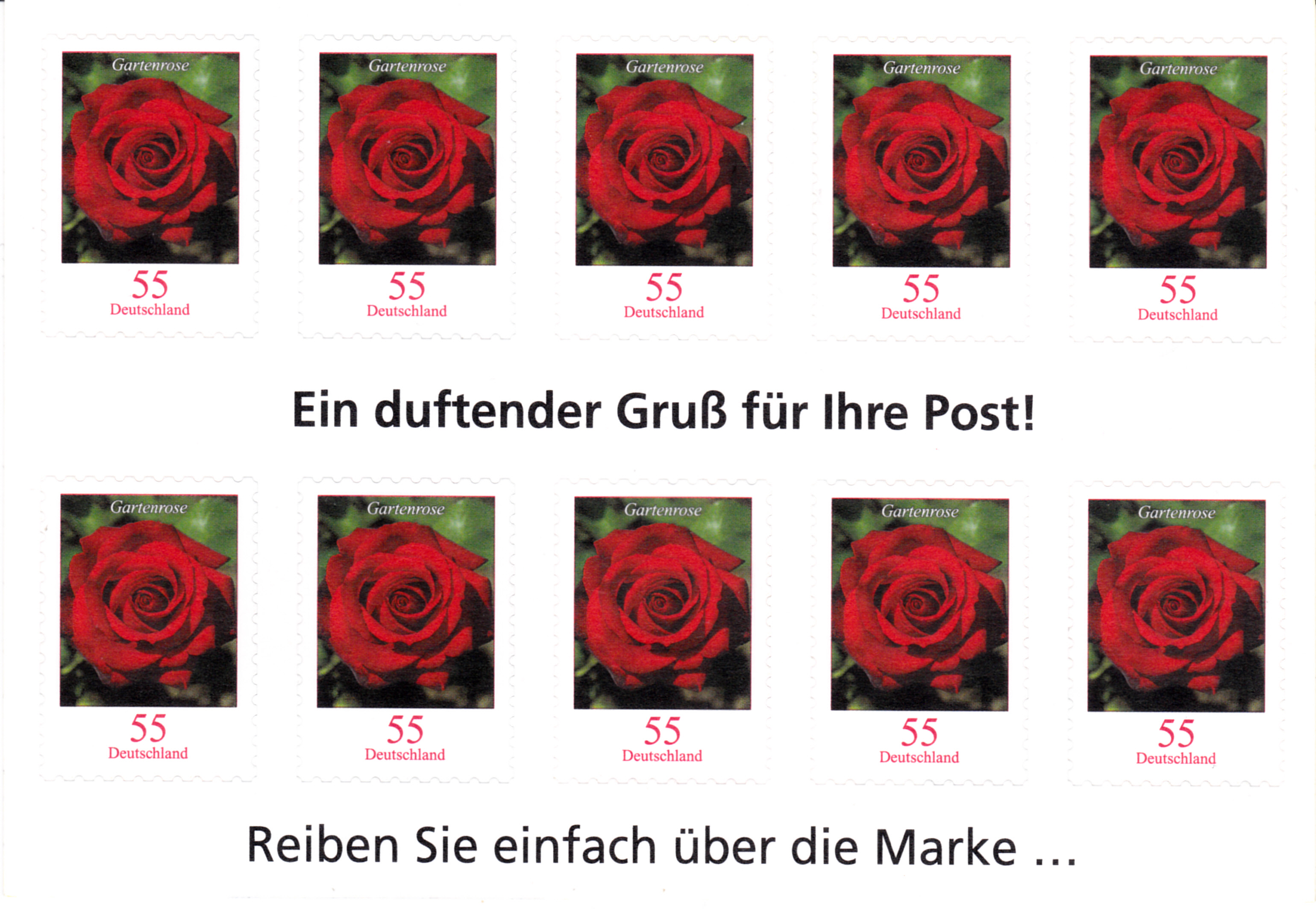 Diese selbstklebende Marke gibt es auch aus einem Markenheftchen und als Einzelmarke aus Folienbogen. Die Marken aus dem Folienblatt wurden zusätzlich mit Duftdruck versehen. Hier zeige ich eine Einzelmarke aus dem Folienbogen.