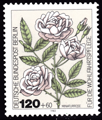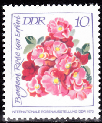 Es gibt auch drei der gezeigten Marken in einem etwas kleineren Format aus Markenheftchen. Hier zunächst die Marke zu 10Pf (MiNr 1778) mit der Polyantha-Rose mit dem Namen "Bergers Rose Iga Erfurt".
