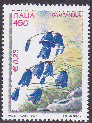 Aus Italien kommt diese Marke (MiNr 2756), die in einer Serie "Umwelt und Natur" zum Welttag gegen die Ausbreitung der Wüsten erschienen ist, mit einer Glockenblume. Weder auf der Marke noch im Michel wird hier Näheres zur Art ausgesagt.