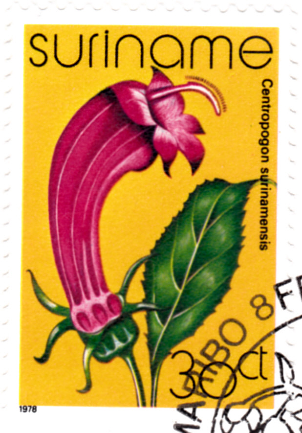 Auf dieser Marke aus Surinam (MiNr 808) sehen wir die Art Centropogon surinamensis.