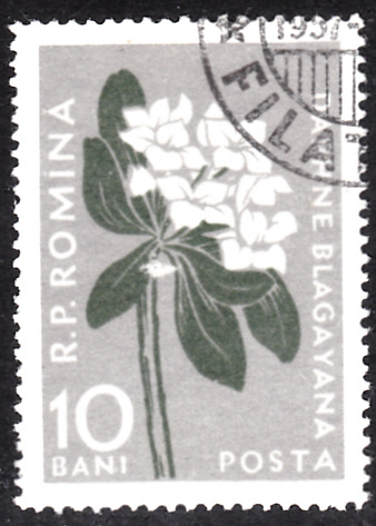 Auf einer Marke der Serie "Flora der Karpaten" aus Rumänien (MiNr 1648) sehen wir eine Blüte des Königs-Seidelbast (Daphne blagayana). Im Michel wird er Weißer Seidelbast (Daphne blagayana) genannt.