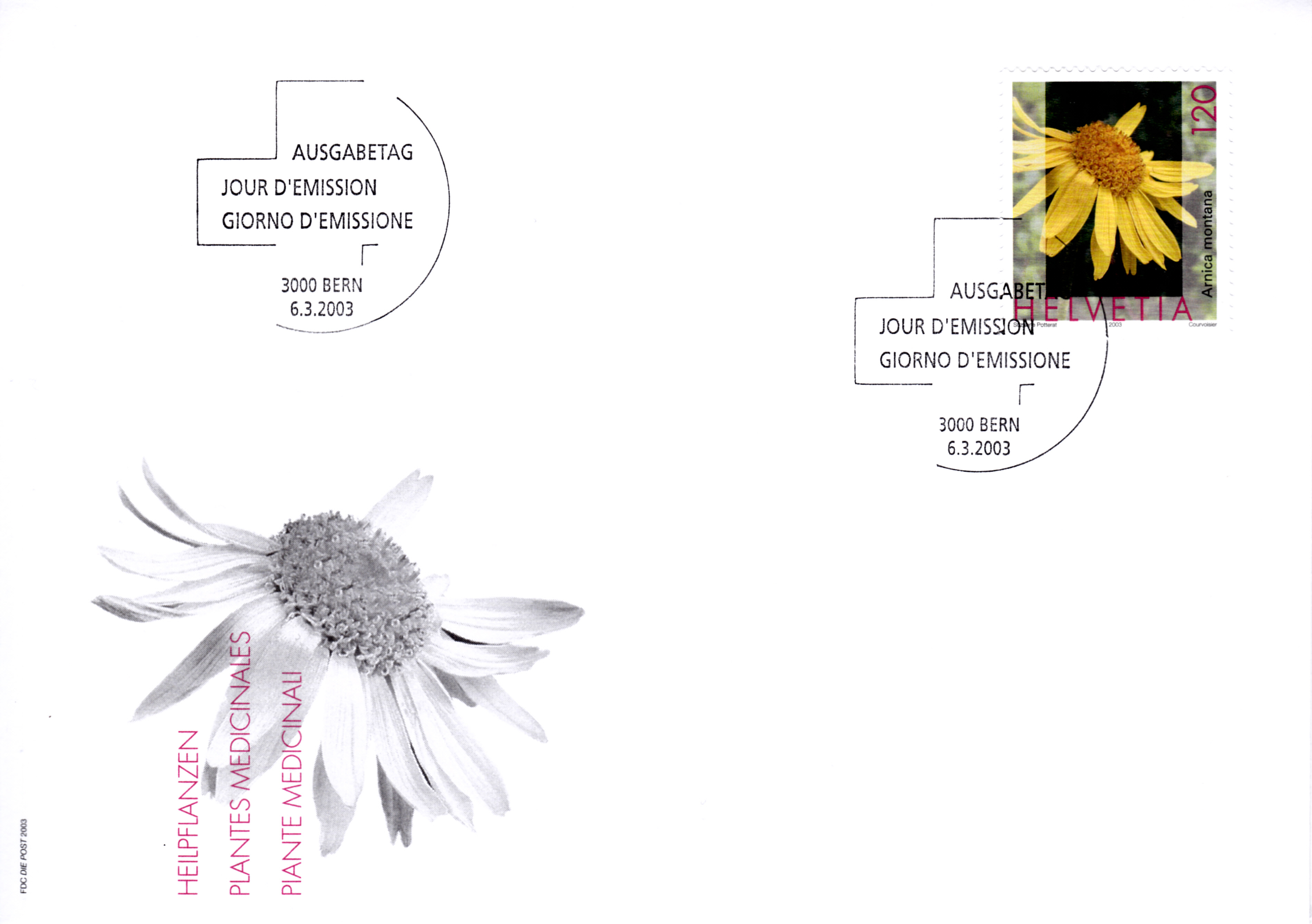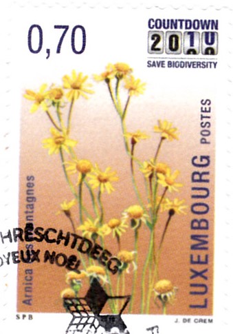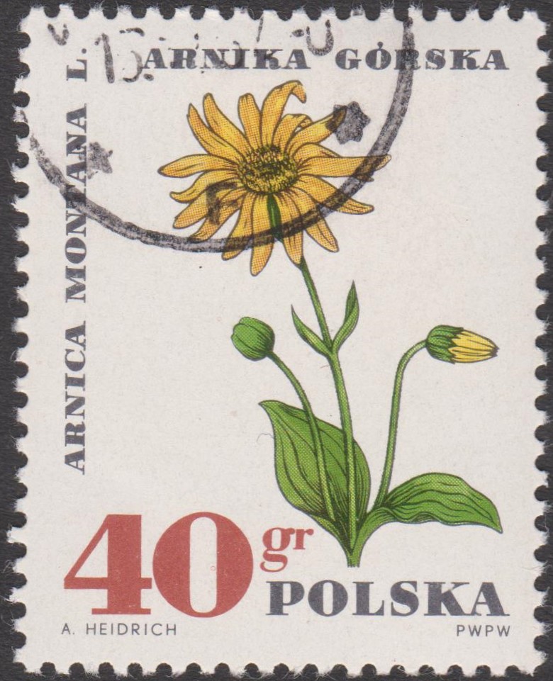 Eine Marke aus Jugoslawien (MiNr 1200) zeigt eine Echte Arnika (Arnica montana).