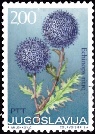 Auf dieser Marke aus Jugoslawien (MiNr 1511) ist eine Ruthenische Kugeldistel (Echinops ritro) zu sehen.