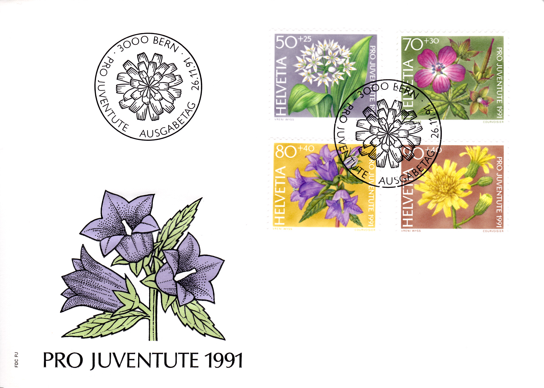 Auf diesem FDC finden wir den kompletten Satz Pro Juventute 1991.