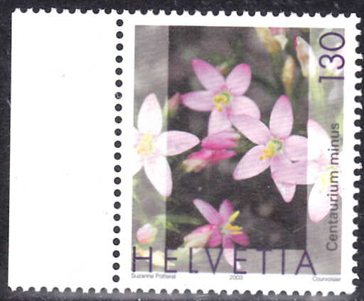 Aus der Schweiz kommt diese Marke (MiNr 1824) mit dem Echtem Tausendgüldenkraut (Centaurium erythraea).
