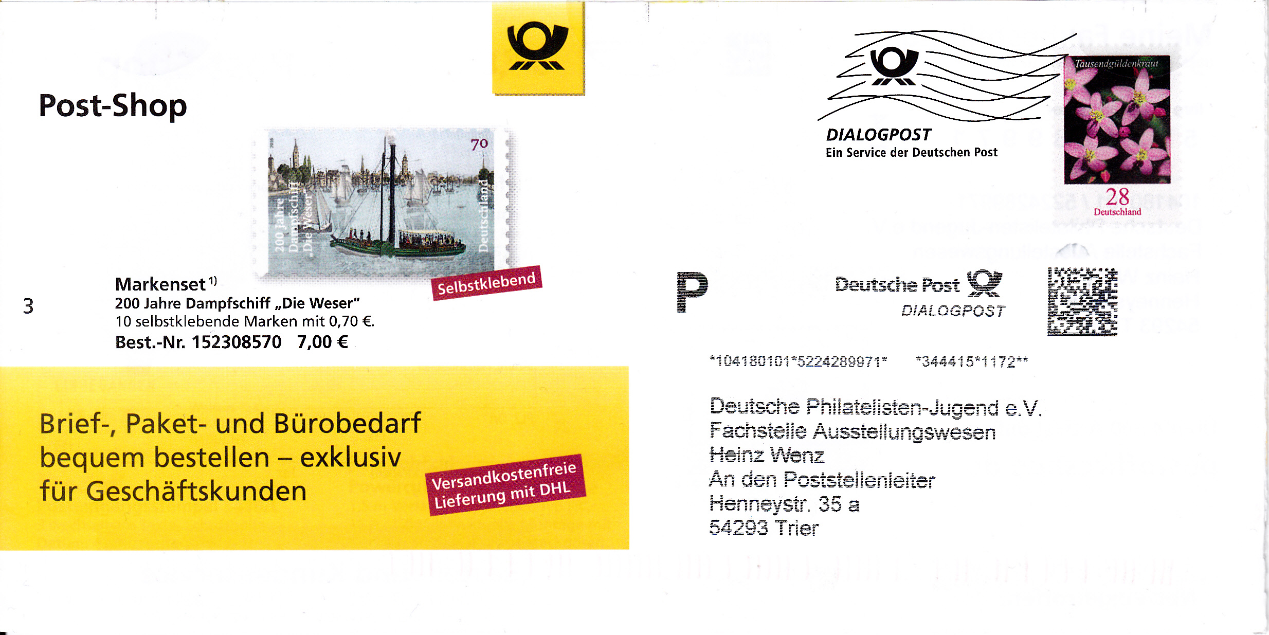 Hier folgt noch ein ähnlicher Faltbrief mit der 28 Cent-Marke als Dialogpost, der Anfang Januar 2018 verschickt wurde.