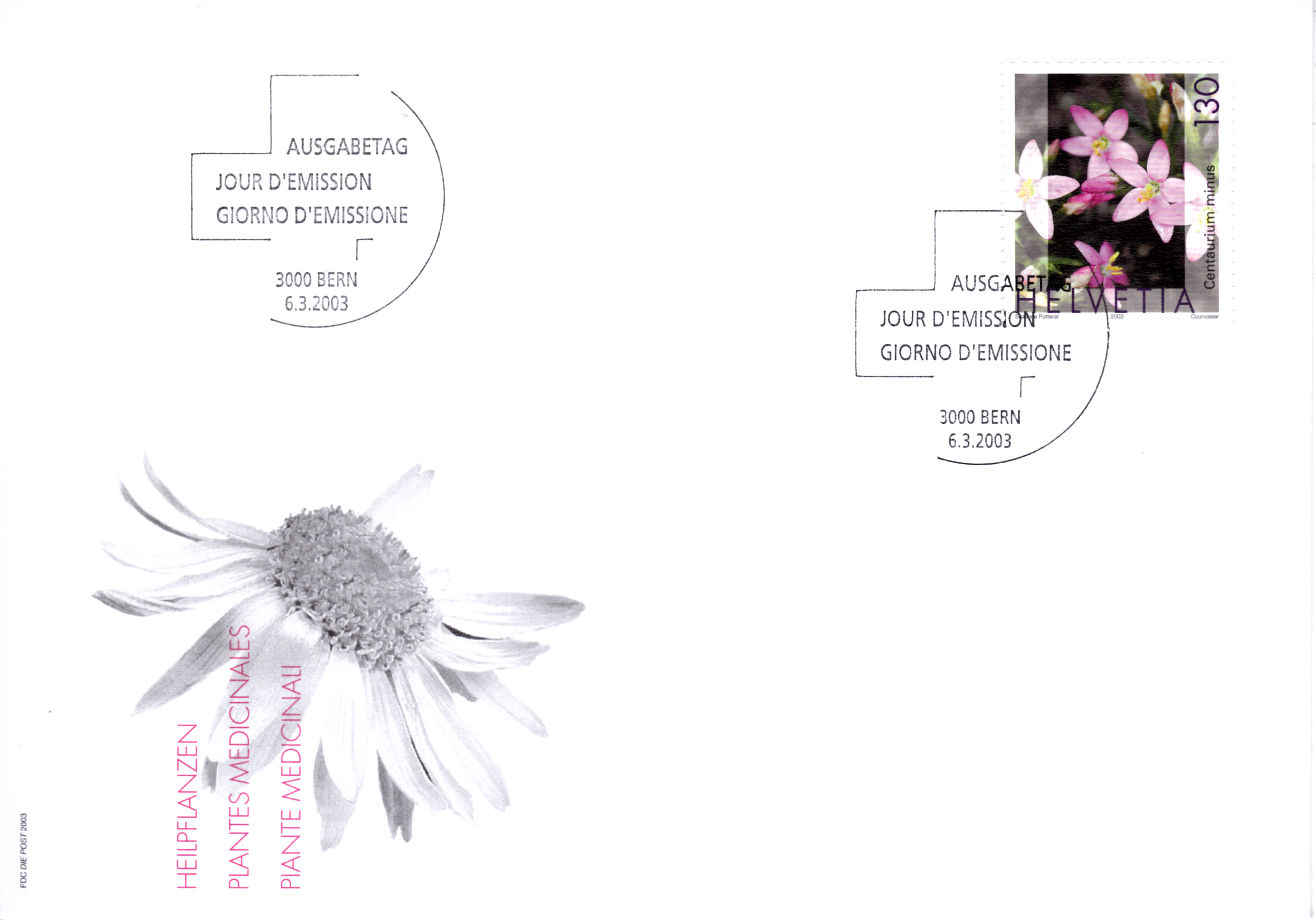 FDC der Schweizer Post mit der zu Beginn hier gezeigten Marke (MiNr 1824) mit dem Echtem Tausendgüldenkraut (Centaurium erythraea).