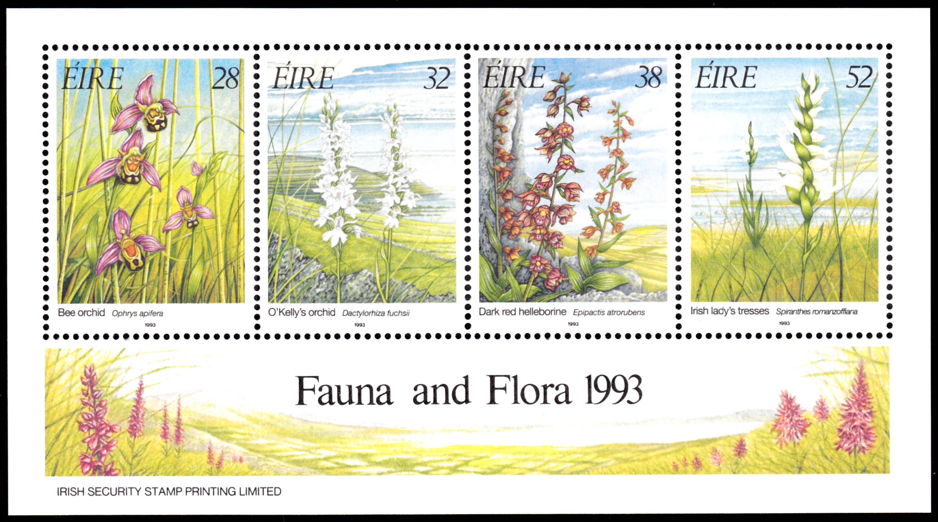 Diese Marke ist auch zusammen mit drei weiteren Marken mit Orchideen in einem Block erschienen. den Block gibt es in zwei Größen: I = 130 x 71 mm und II = 130 x 91 mm. Der Block 10 II weist auf dem größeren oberen Blockrand den Zudruck des Emblems der Internationalen Briefmarkenausstellung BANGKOK ’93 sowie der Staatsflaggen von Thailand und Irland auf. Dieser Block wurde nur auf dem Ausstellungspostamt der irischen Post und von der Versandstelle verkauft.