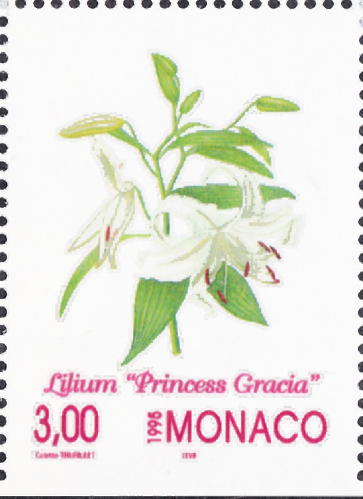 In einer Serie "Blumenzüchtungen" ist in Monaco diese Marke (MiNr 2271) mit Lilie "Princess Gracia" erschienen.