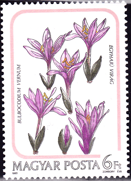 Diese Marke aus Ungarn (MiNr 3794 A) zeigt eine Frühlingslichtblume (Colchicum bulbocodium).