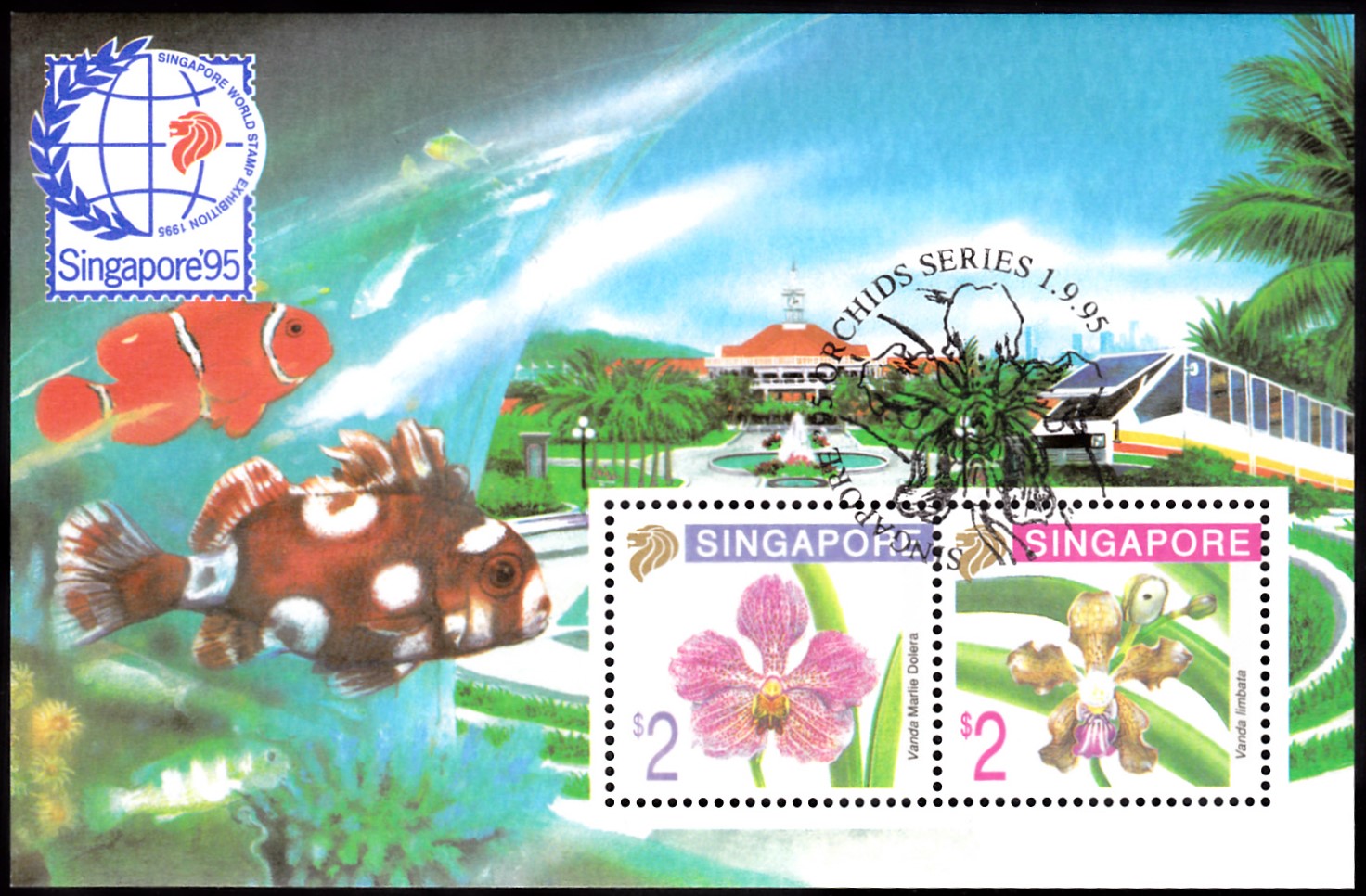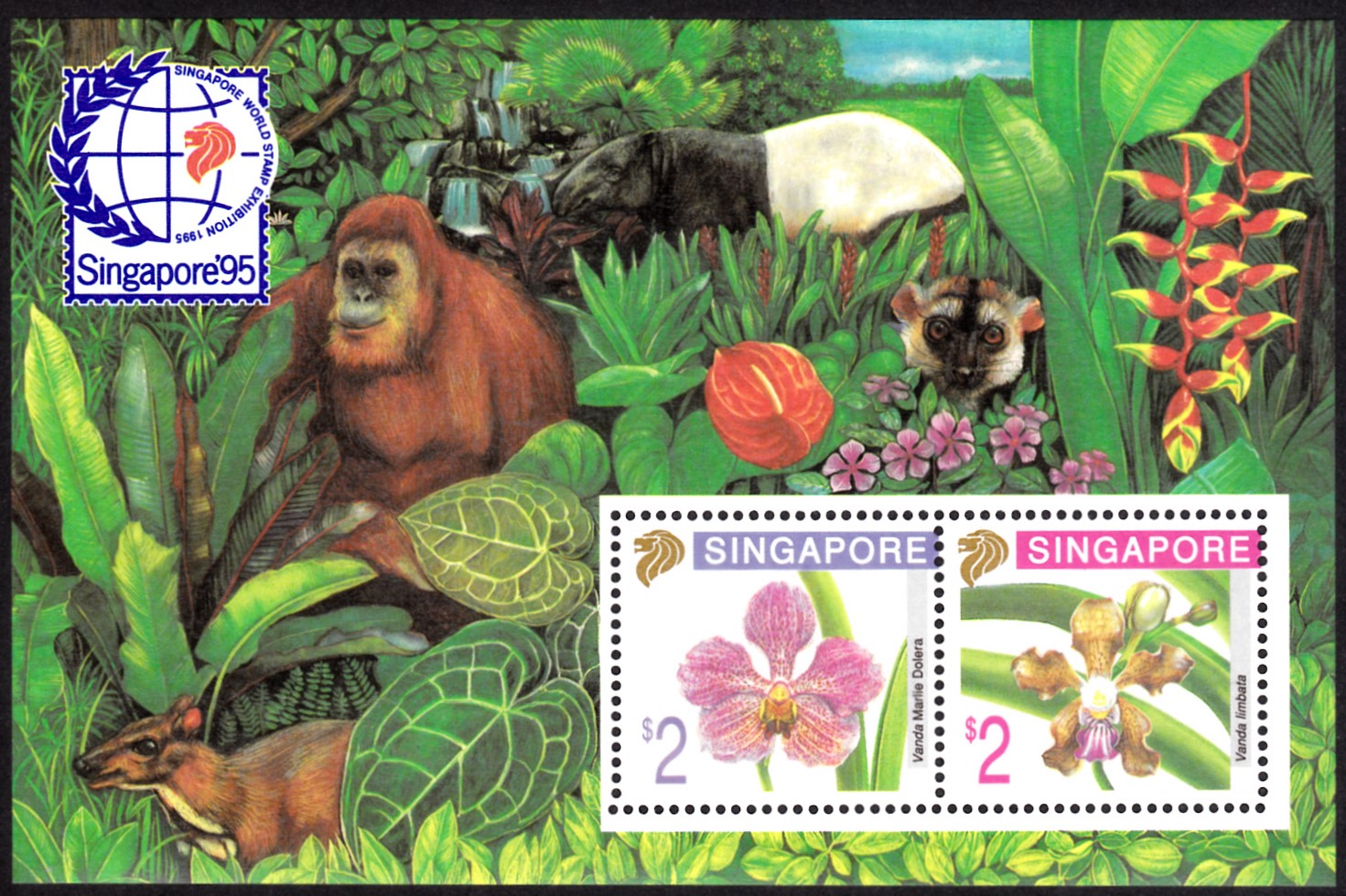 Auf dieser Marke aus Singapur (MiNr 762 A) sehen wir die Blüte einer Vanda limbata.