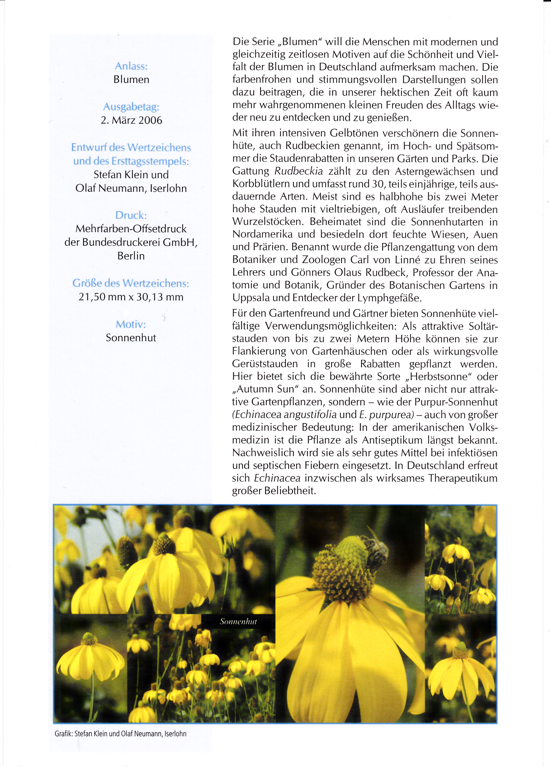 In der Dauerserie "Blumen" der Deutschen Post ist auch eine Marke (MiNr 2524) mit der Blüte eines Gewöhnlichen Sonnenhut (Rudbeckia fulgida) erschienen.