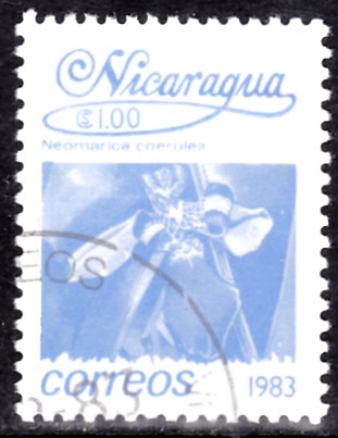 Auf dieser Marke aus Nicaragua (MiNr 2363) wird eine Blüte der Himmelblaue Wanderiris (Trimezia coerulea; Syn.: Neomarica coerulea) gezeigt.