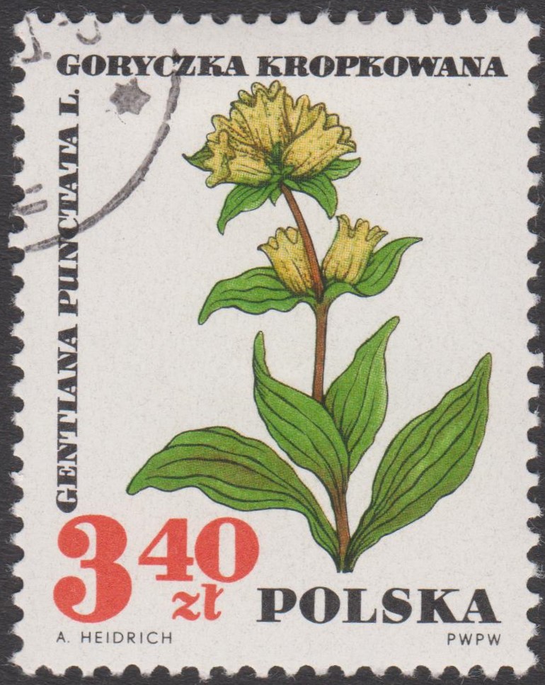 Dieses Postwertzeichen Polen MiNr. 1772 zeigt einen Punkt-Enzian (Gentiana pomctata):