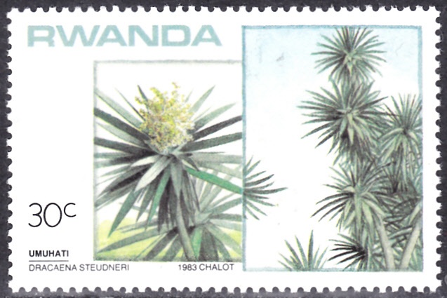 In einer Serie "Blühende Pflanzen" aus Ruanda gibt es auch eine Marke (MiNr 1252) mit zwei Abbildungen der Art Dracaena steudneri. Links mit ein Pflanzenteil mit Blüten und rechts ein etwas größerer Teil dieses Drachenbaumes.