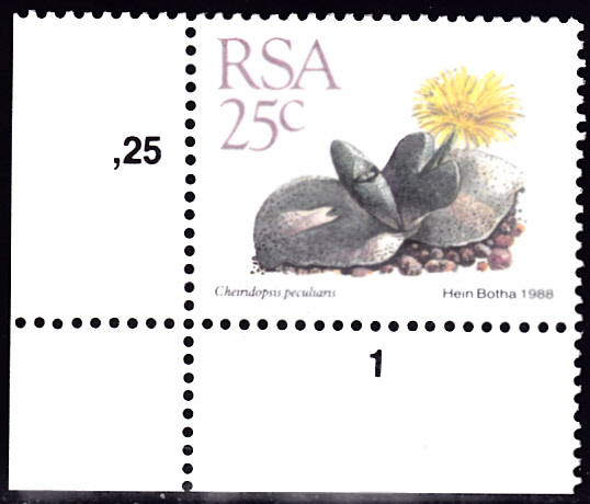 Auf dieser Marke aus Südafrika (MiNr 752) ist eine Cheiridopsis peculiaris abgebildet.