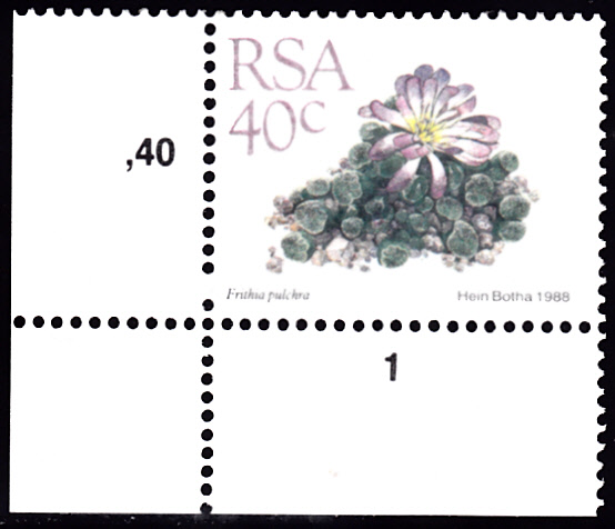 Diese Marke aus Südafrika (MiNr 753) bildet eine Frithia pulchra ab.