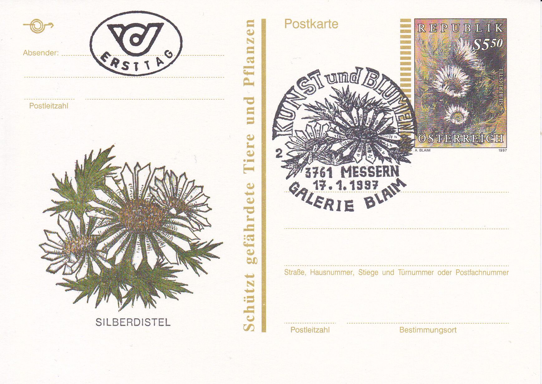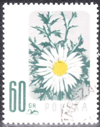 Diese Marke aus Polen (MiNr 1020) zeigt eine Silberdistel (Carlina acaulis).