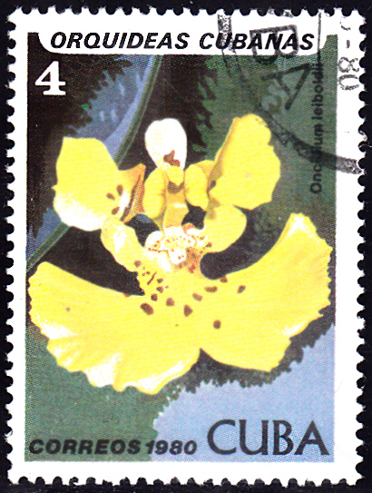 In Kuba ist eine Marke (MiNr 2478) mit der Abbildung einer Blüte der "Tolumnia variegata". Hierzu gibt es eine ganze Reihe von Synonymen, unter anderem auch "Oncidium leiboldii", wie auf der Marke angegeben..