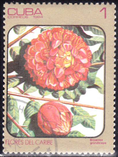 Aus Kuba kommt diese Marke (MiNr 2838) mit Blüten von Brownea grandiceps.