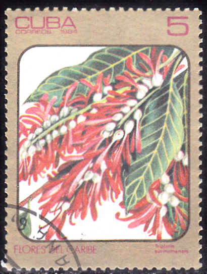 Diese Marke aus Kuba bildet Blüten von einem Triplaris weigeltiana (Syn.: Triplaris surinamensis) ab. Triplaris weigeltiana ist ein bis zu 25 m hoher Laubbaum. Es gibt Unterarten und weitere Synonyme. Er kommt von Kolumbien bis Brasilien über Venezuela, Guyana, Suriname, Guyana, Bolivien, Ecuador und Peru vor.