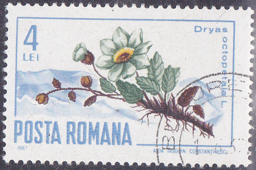 Aus Rumänien kommt diese Marke (MiNr 2599) mit einer Weißen Silberwurz (Dryas octopetala).