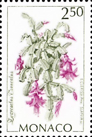 In Monaco ist diese Marke (MiNr 2159) mit einem Disocactus flagelliformis nach einem Aquarelle von Etienne Clérissi (1888-1971, monegassischer Maler) erschienen. Auf der Marke und im Michel wird als Name ein Synynom (Zygocactus truncatus) verwendet.
