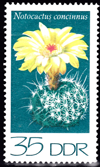 Auf dieser Marke aus Äquatorial-Guinea (MiNr 913) wird ein blühender Parodia mammulosa gezeigt.