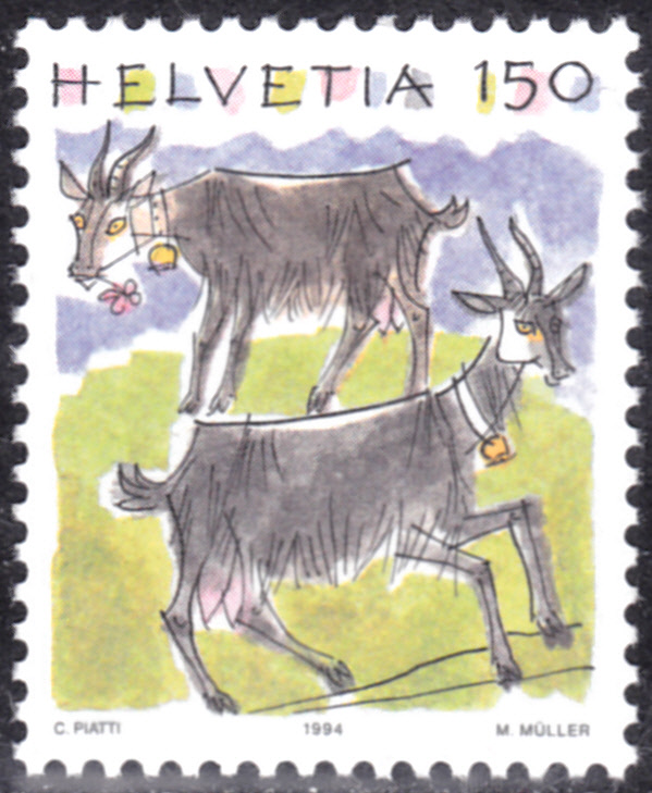 In Albanien ist 1968 eine Serie mit verschiedenen Hausziegen erschienen. Hier eine Marke (MiNr 1256) mit einer Saanenziege. Die Saanenziege ist eine große, meist ungehörnte Ziege mit weißem, kurzen Fell, die ursprünglich aus den Saanetal im Berner Oberland stammt.