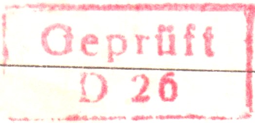 Auf die durchgeführte Zensurierung weist ein Handstempel in Rot "Zur gebührenfreien Beförderung zugelassen" Geprüft!" vom Prüfer "D 43" hin.