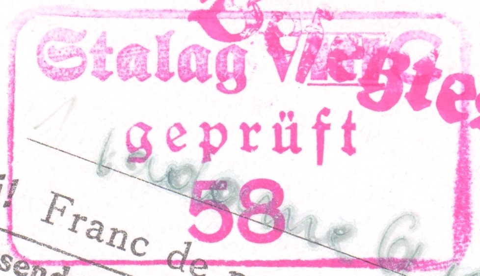 Postkartenvordruck von Stalag VIII C in Sagan, geschrieben am 11.05.1942, mit Prüferstempel "Stalag VIII C geprüft 15", gelaufen nach Frankreich: