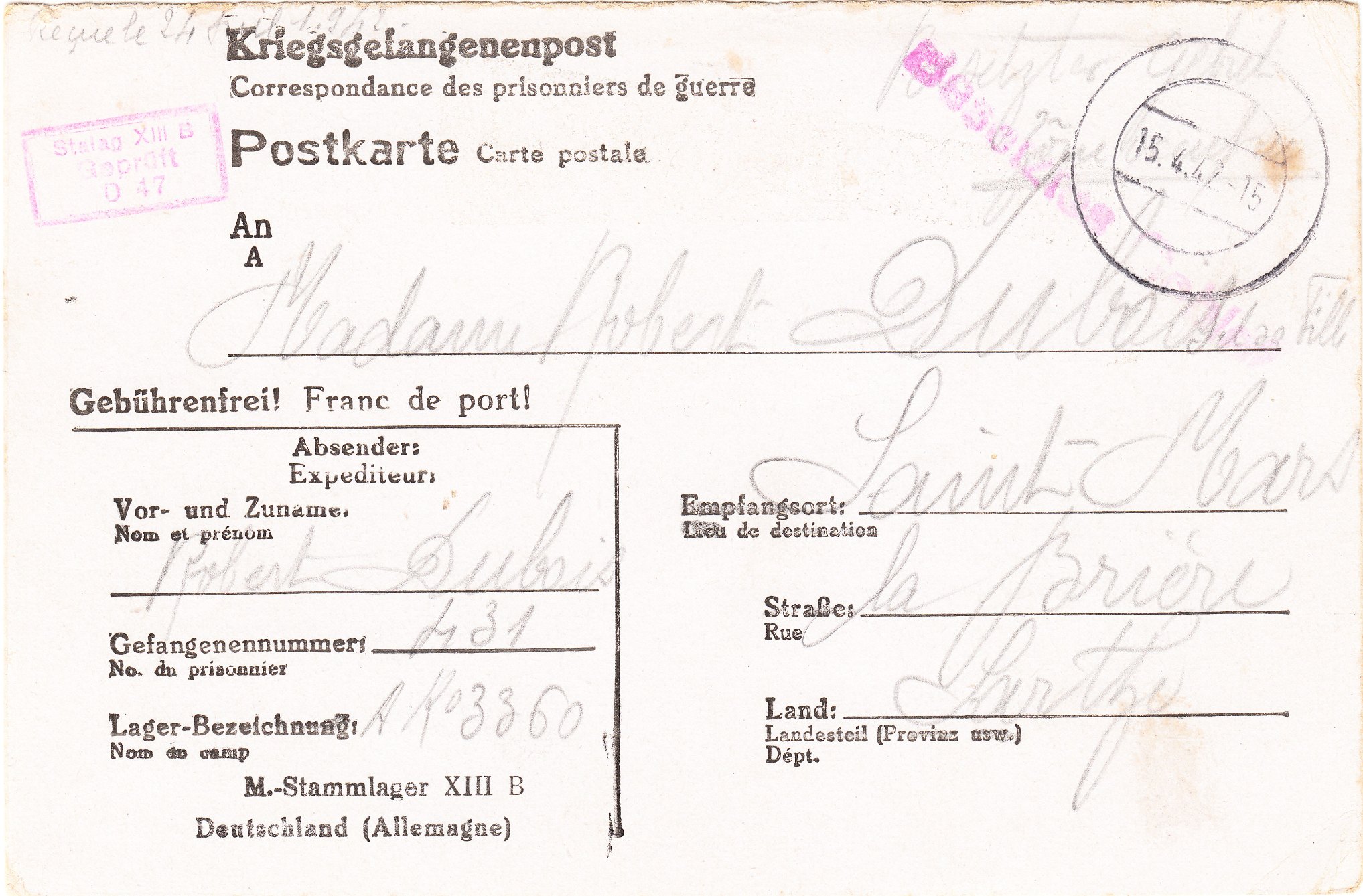 Die Kriegsgefangenen erhielten diesen zweisprachigen Postkartenvordruck mit Angabe der Lagernummer im Absender.
