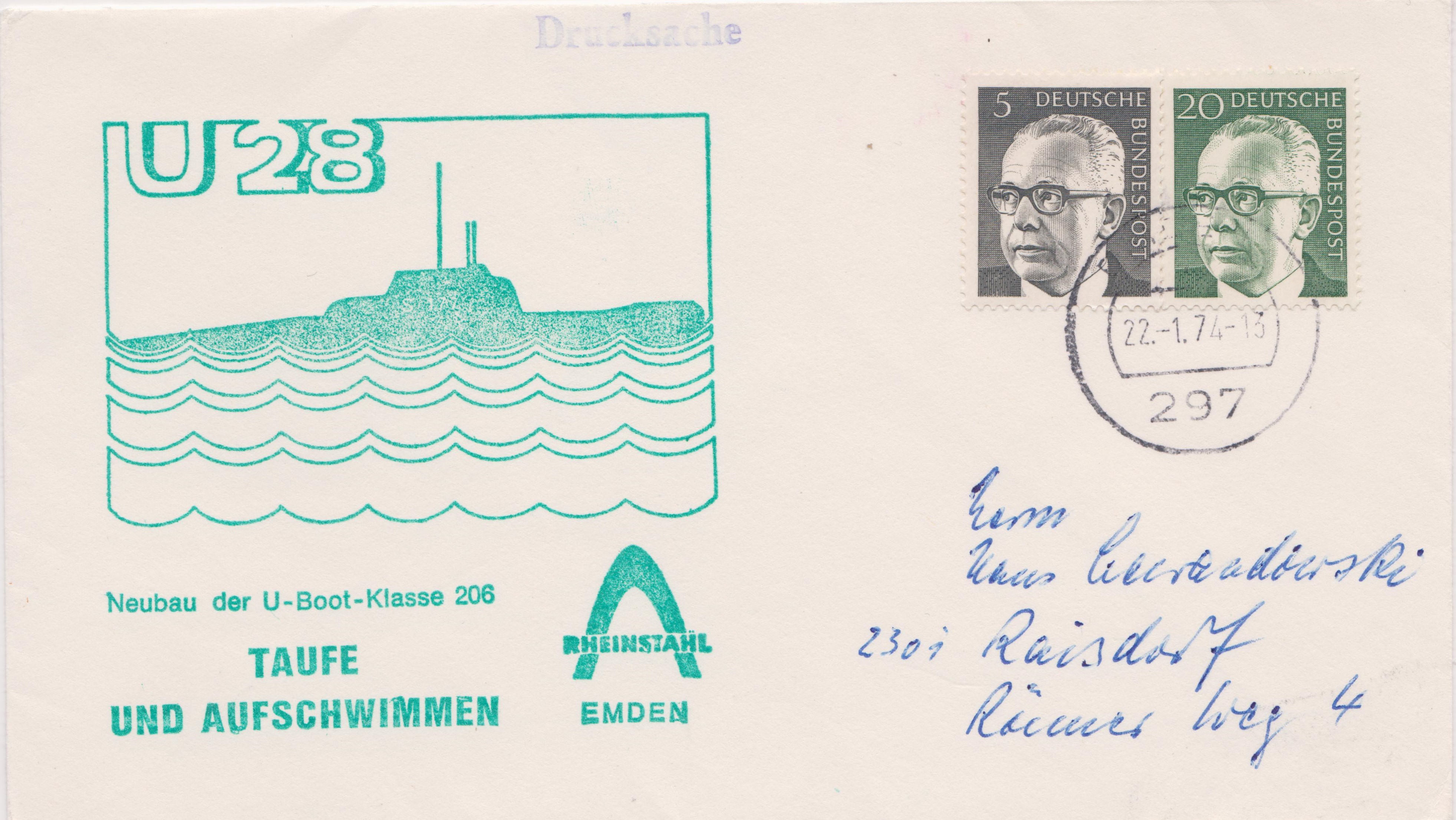 U 28 (NATO-Bezeichnung S 177) war ein deutsches U-Boot der U-Boot-Klasse 206 der Bundesmarine. Es ist am 16.01.1973 bei den Rhein-Stahl-Nordseewerken in Emden mit der Baunummer 50/448 auf Kiel gelegt worden.