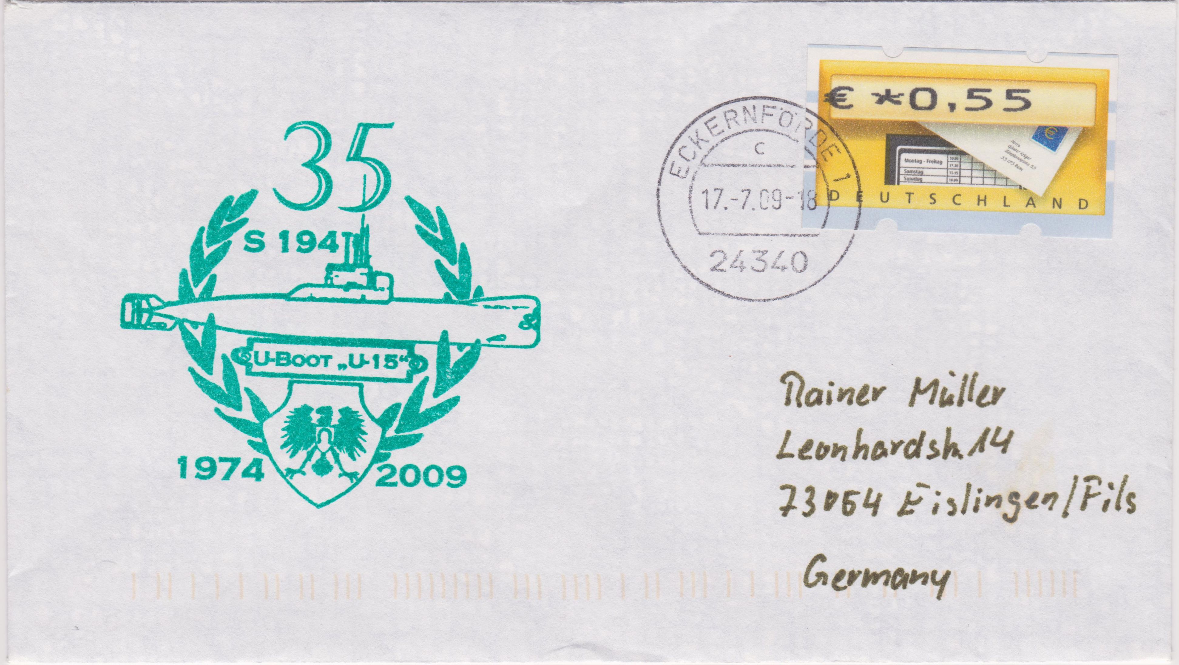 Das 35jährige Jubiläum der Indienststellung am 17.07.2009 dokumentiert dieser Beleg mit einem speziellen Cachetstempel in Grün: