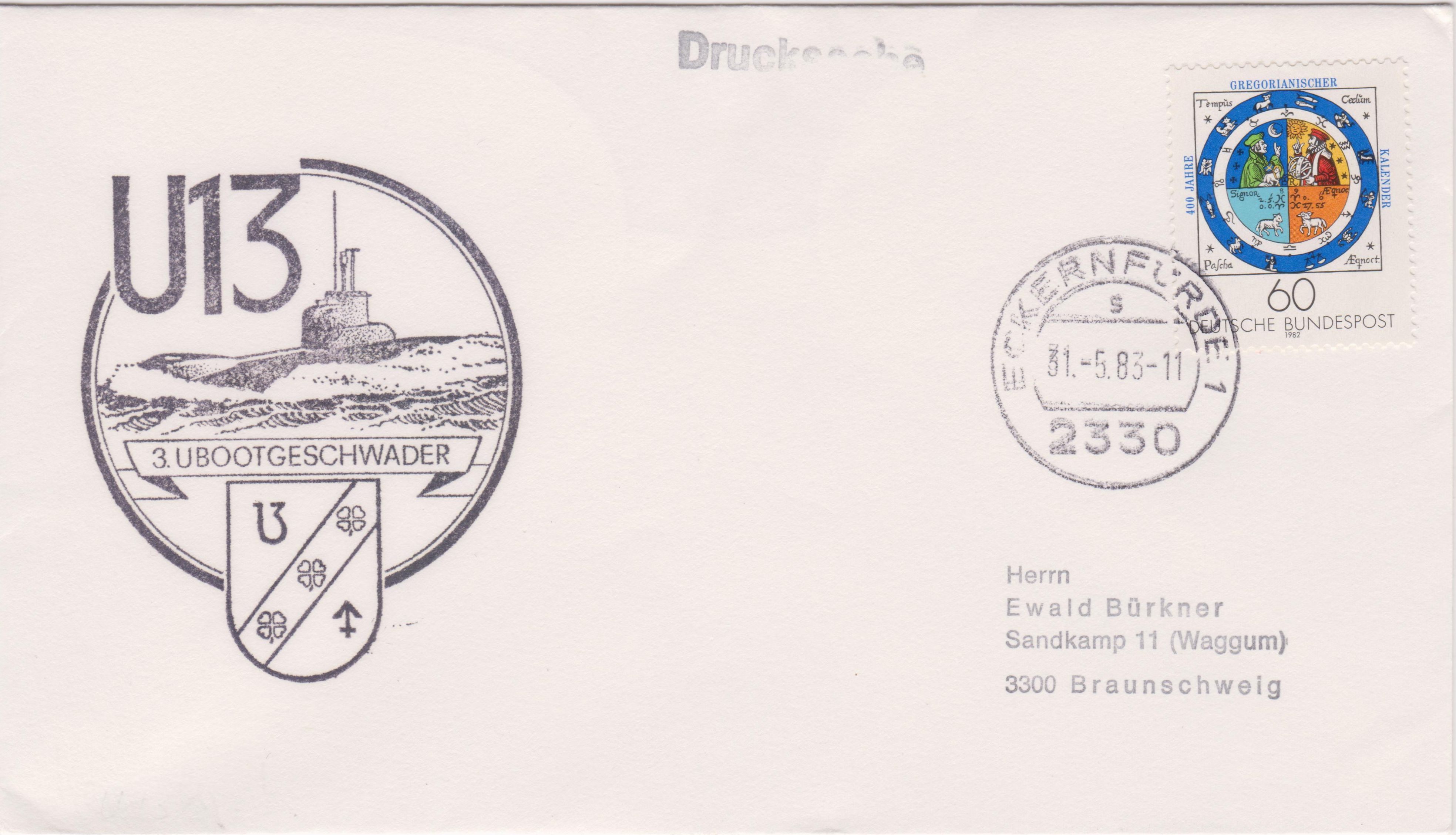 U 13 gehörte dem in Eckernförde stationierten 3. Ubootgeschwader an, bis es am 26.03.1997 außer Dienst gestellt wurde. U 13 wurde bei HDW abgewrackt (leider fehlt mir zum Fotografen dieser interessanten Aufnahme jegliche Information!):