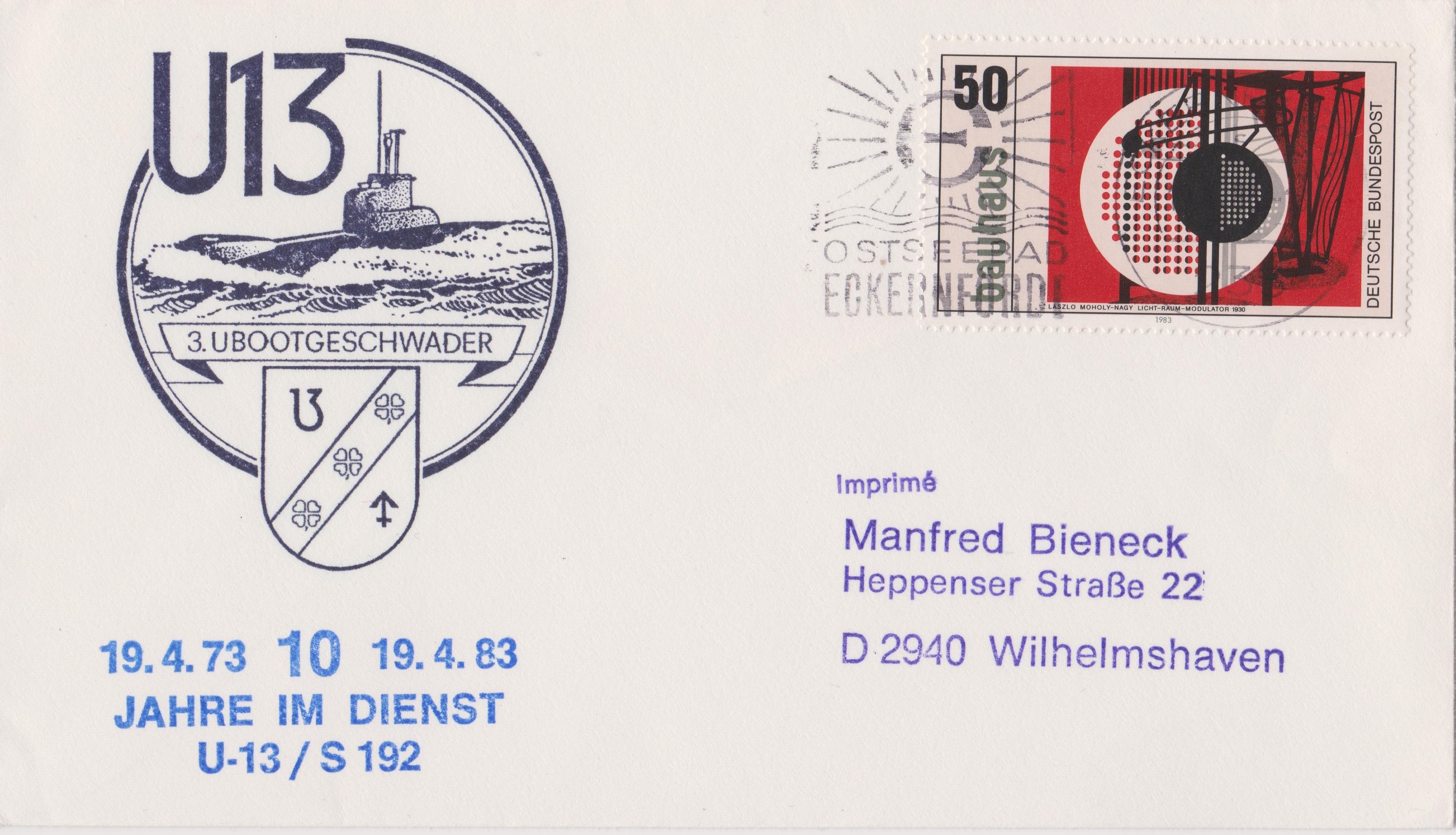 Das U-Boot "U 13" mit der Kennung "S 192" wurde am 15.11.1969 auf Kiel gelegt, lief am 29.09.1971 vom Stapel und wurde am 19.04.1973 in Dienst gestellt. Hier ein Originalfoto von U 13 aus dem Bundesarchiv: